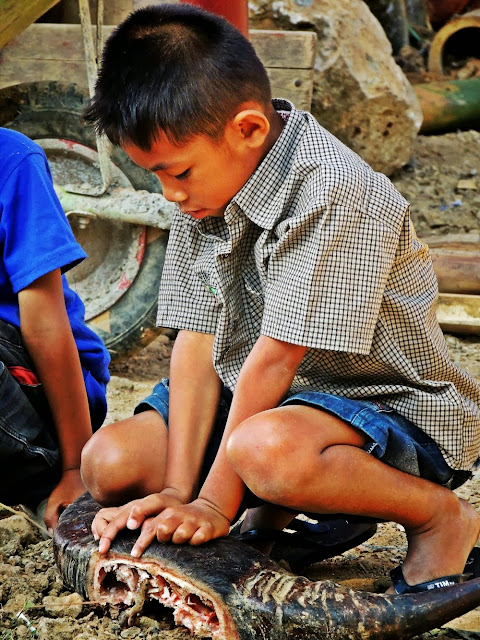 Spielen mit frisch abgetrennten Wasserbüffelhörnern ist doch das Schönste
